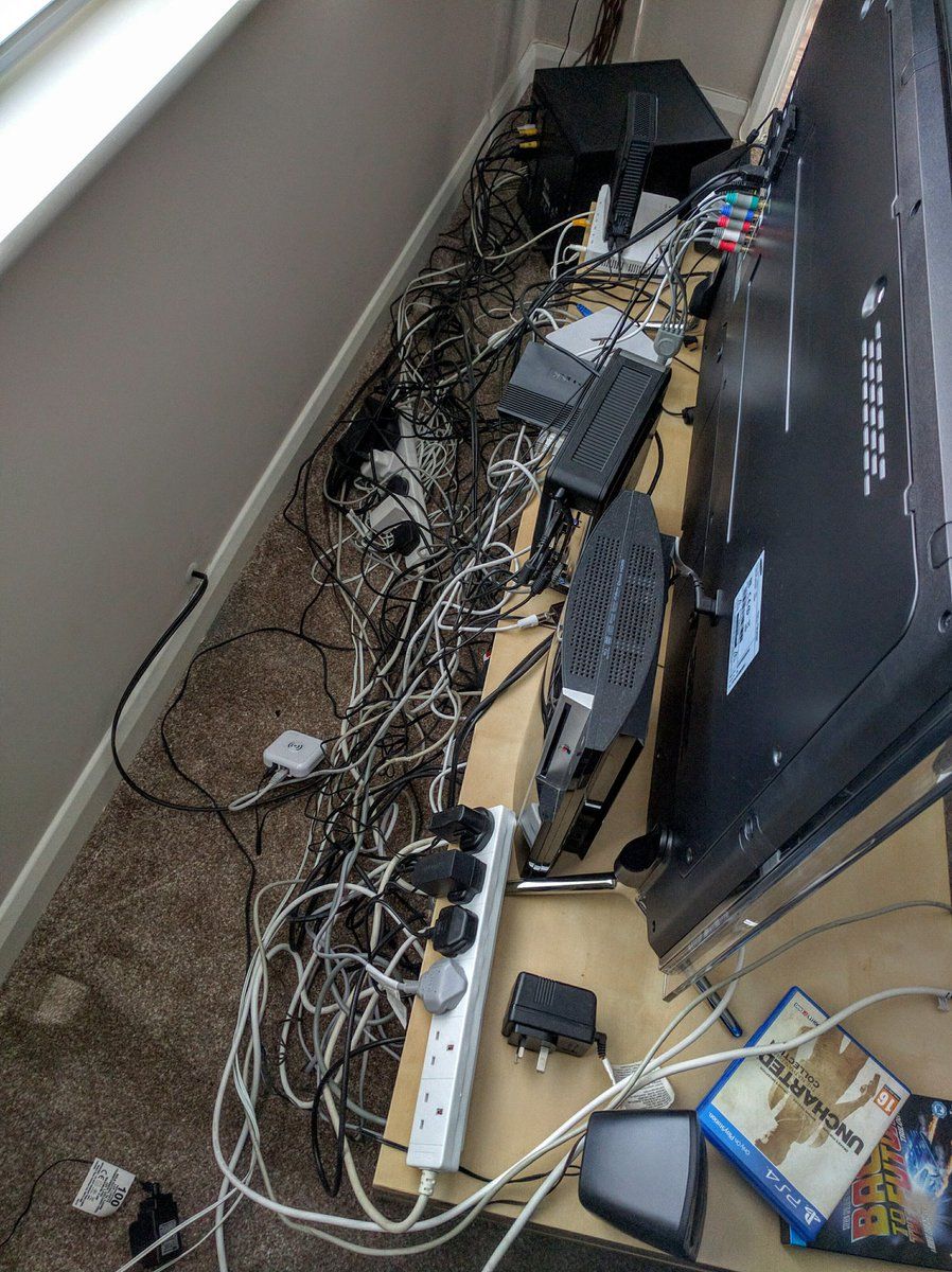 : The area behind my TV has built up some technical debt #pluglife